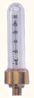Eine Armatur aus Messing mit Gewindeanschluss M 14 x 1 enthält die Zu- und Rückflussleitung. Der in der Mitte befindliche Zufluss wird zu einem, mit Gummi gedichteten, konischen Glasrohr geführt. In diesem Messrohr befindet sich der Schwebekörper, der als Kugel ausgeführt ist. Die Oberkante des Schwebekörpers gibt je nach Höhenstellung die Durchflussmenge an der Teilung des Messrohres an. Als Rückflussleitung dient der Raum zwischen Glasrohr und durchsichtiger Kappe.. Die Abdichtung des Gewindeanschlusses M 14 x 1 wird unmittelbar gegen Metall ausgeführt.